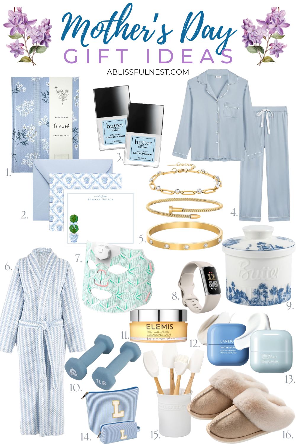 9. Blue & White Butter Crock: This butter crock is both pretty and practical for mothers who love to cook. It keeps butter soft and ready to spread anytime! It comes in 7 charming pattern options, so it’s easy to match with any kitchen style.