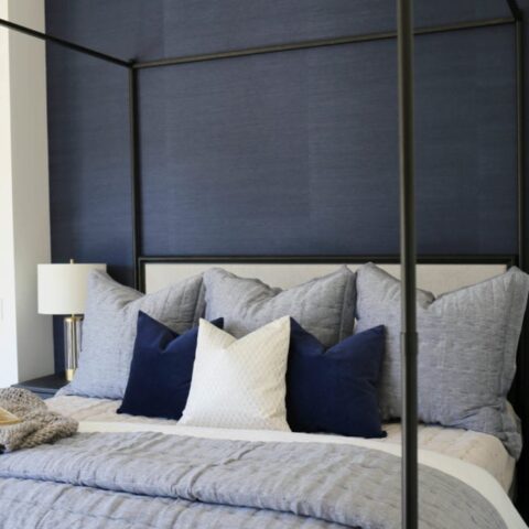 Styling a navy bedroom is focused on creating balance and charm and adding personality to the space.