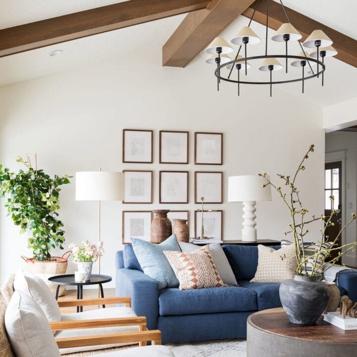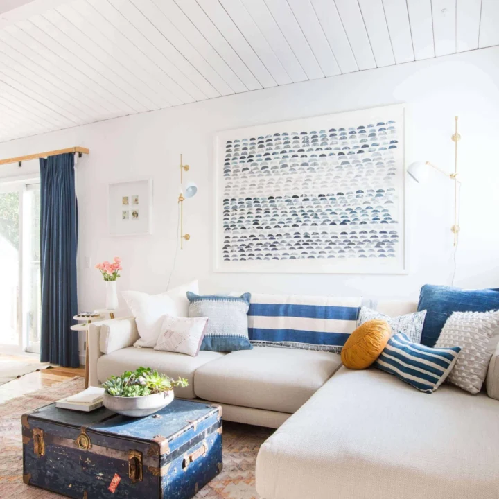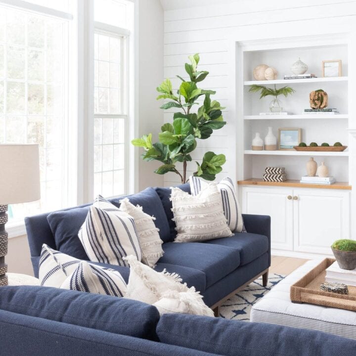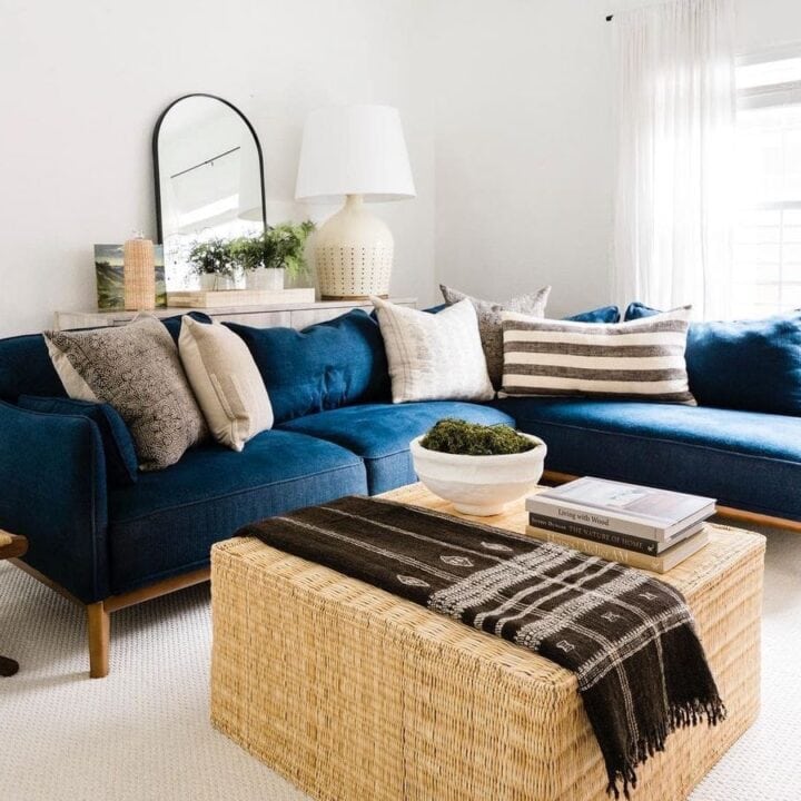 So, here is a list of decor items to use in a navy and beige living room that can add texture, style, and a bit of personality to complete the look.