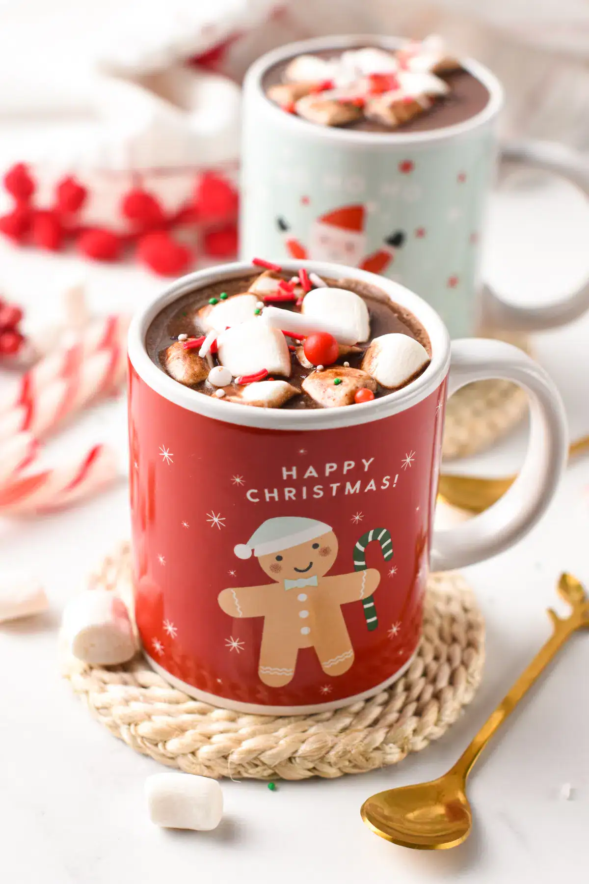 Hot chocolate with marshmallows and whipped cream on top is perfect if you are celebrating your year at home on a chilly winter night.