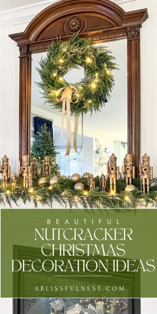 Pair your classic nutcracker holiday decor with fresh garlands or faux greenery to soften the edges and bring in natural texture.