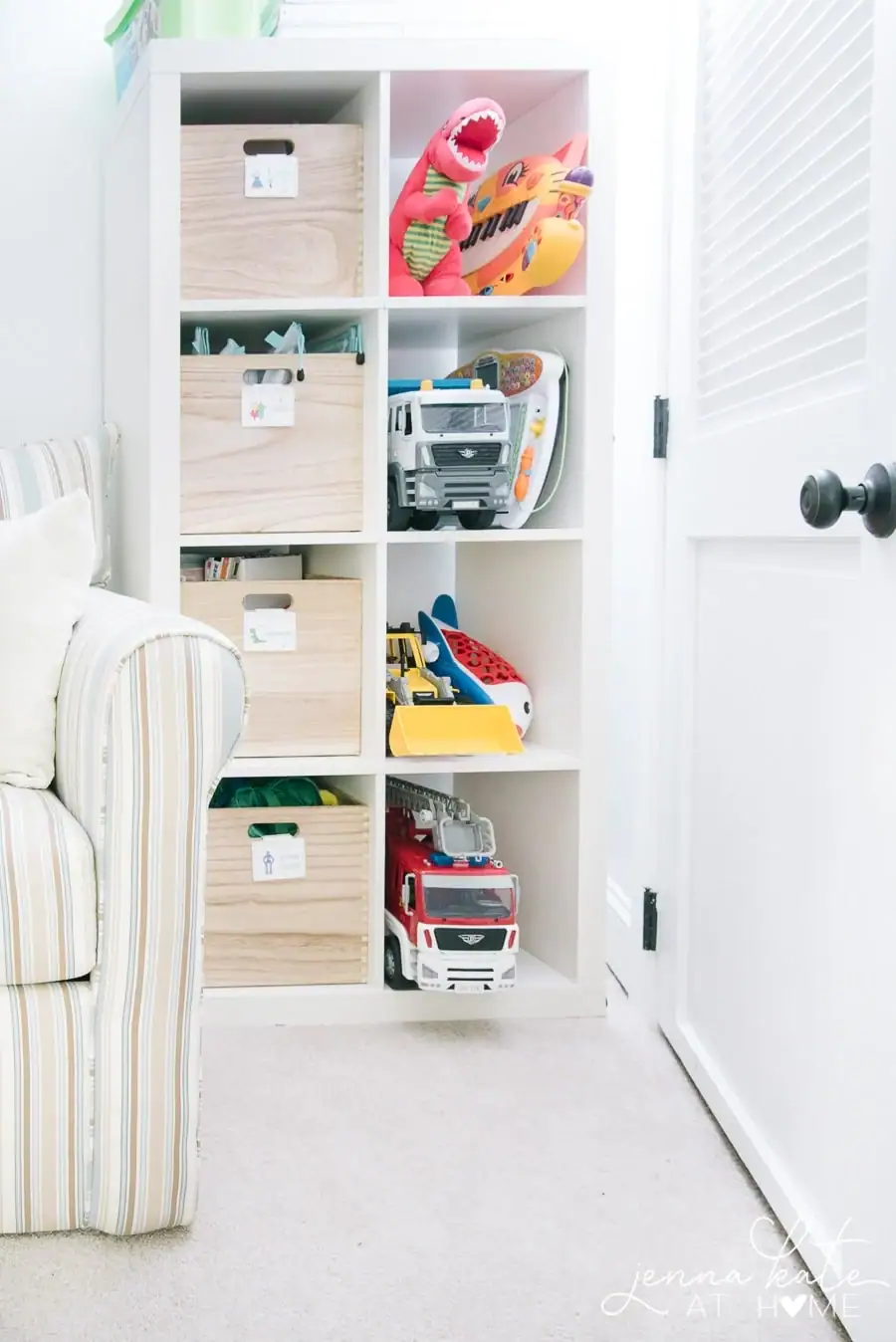 Separating these created zones helps your children learn to put things back in the right spot instead of tossing everything into one giant pile.