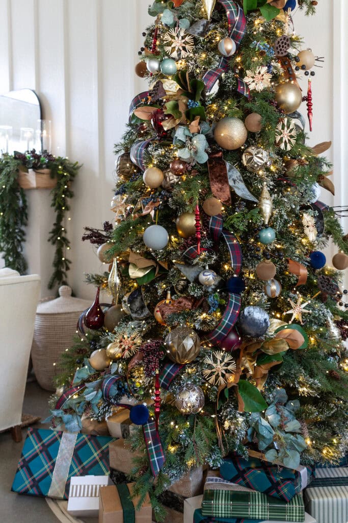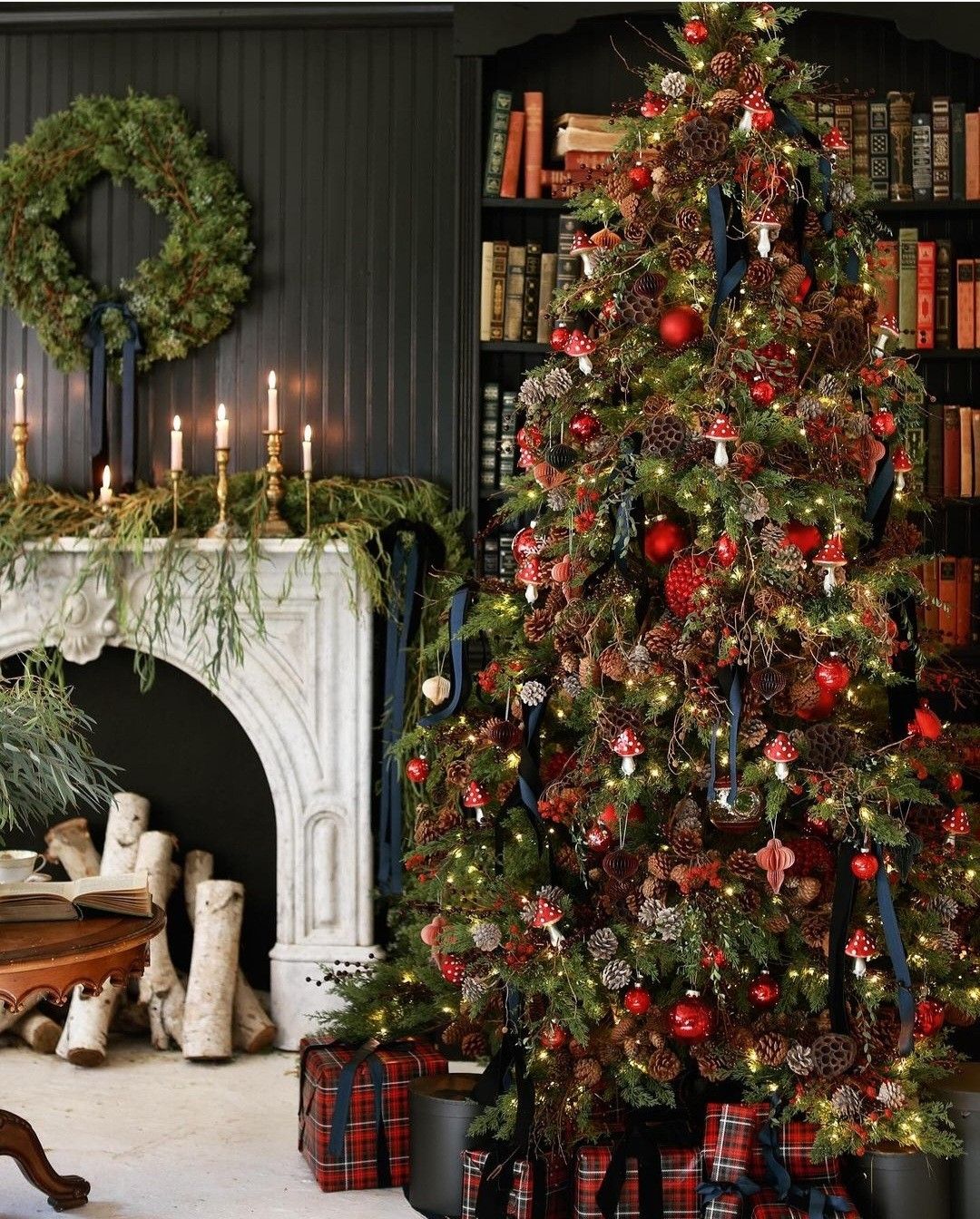 Decorate with tartan ribbons, vintage-inspired ornaments, and metallic accents in brass or gold for a warm, traditional holiday tree. Add velvet bows, soft white lights, and a wool tree skirt to give it that relaxed, lodge-inspired feel we all love.