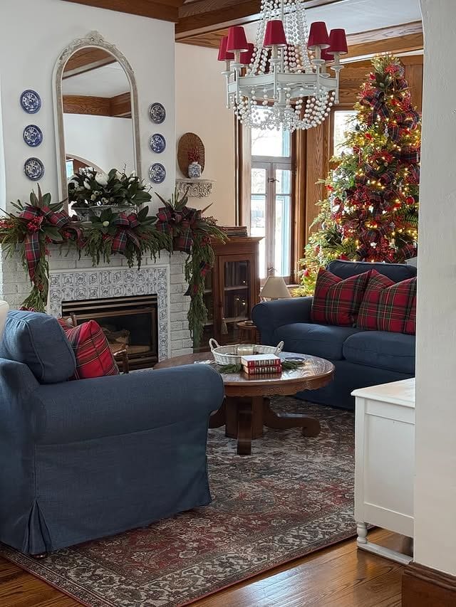 From tartan ribbons to velvet pillows and candlelit tables, this look creates a space where everyone feels welcome, festive, and right at home.