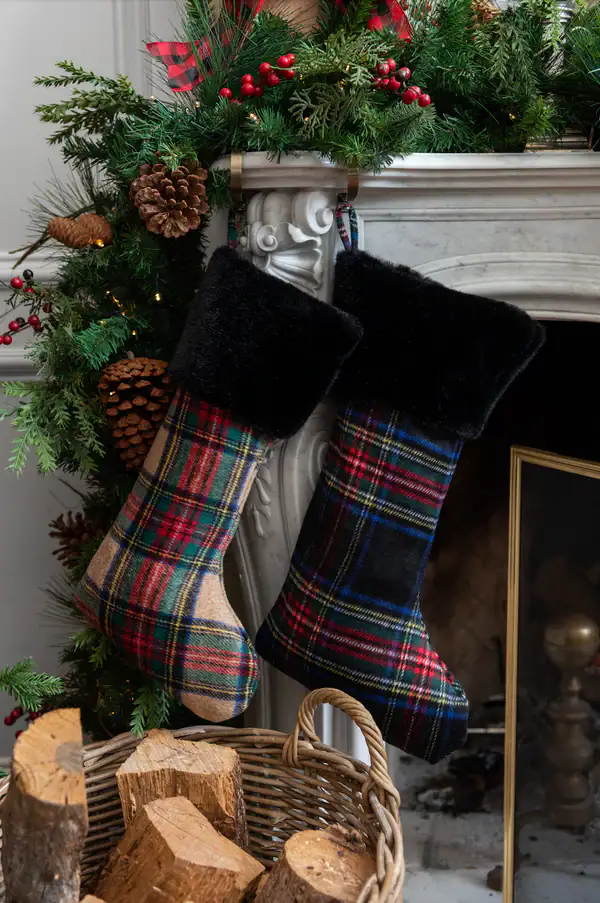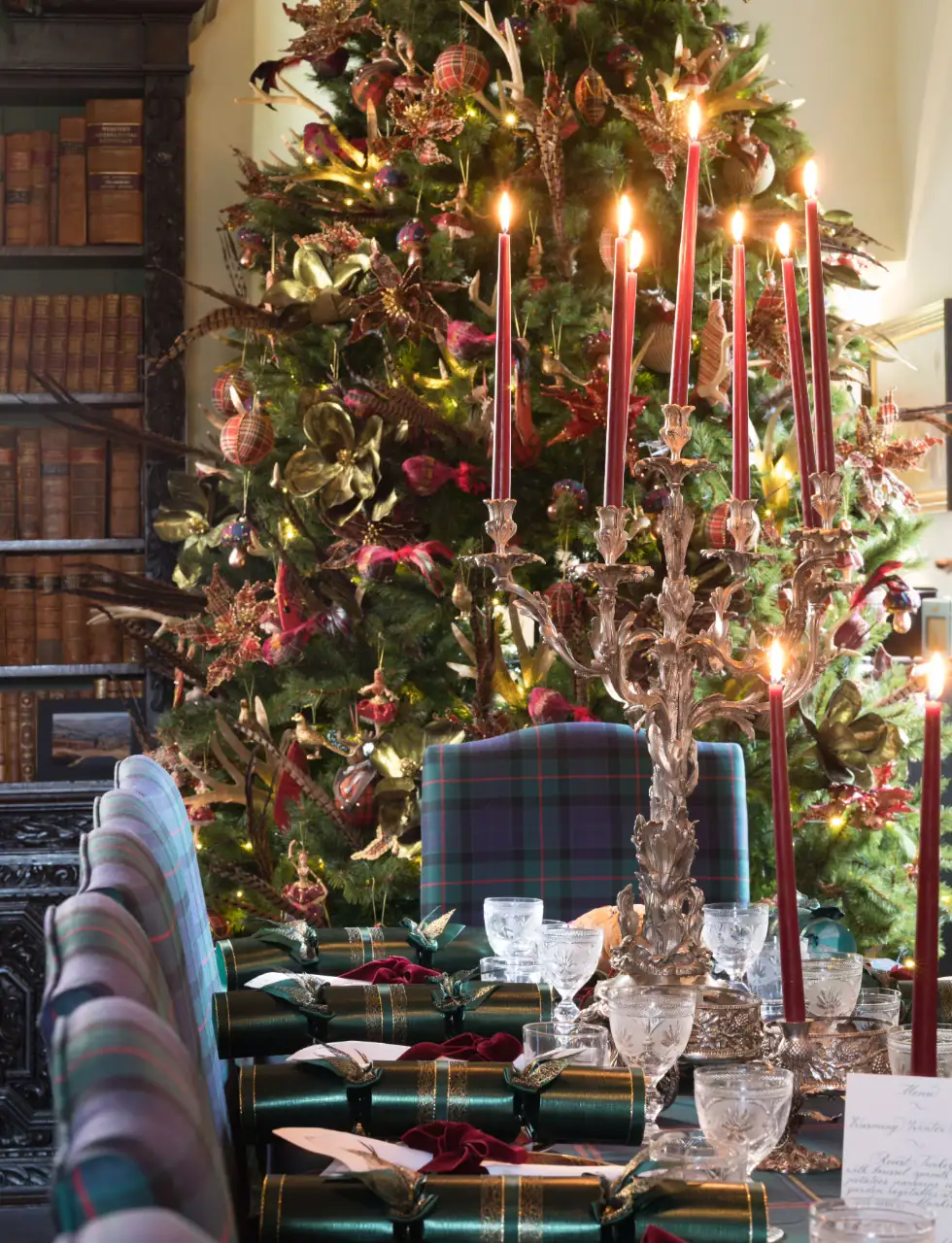 You will often find tartan plaid throws, rich leather details, and soft velvet accents layered together to build that cozy and elegant holiday mood.