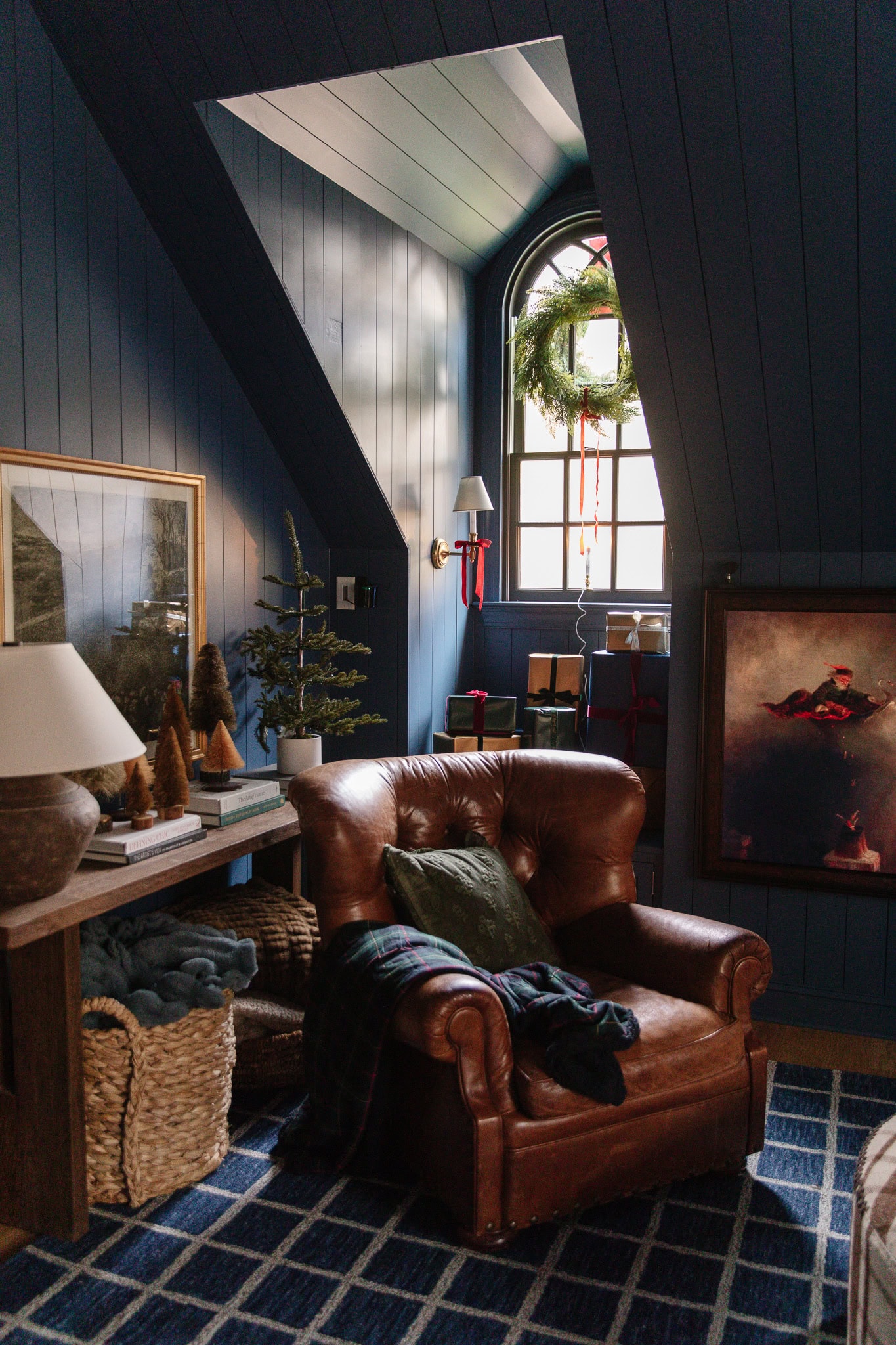 It’s the kind of space where you picture soft music playing, pine garlands hanging low, and a cozy golden glow.