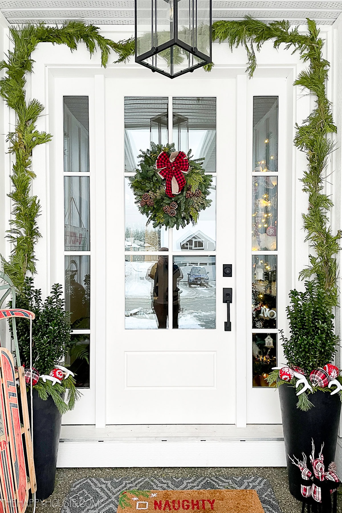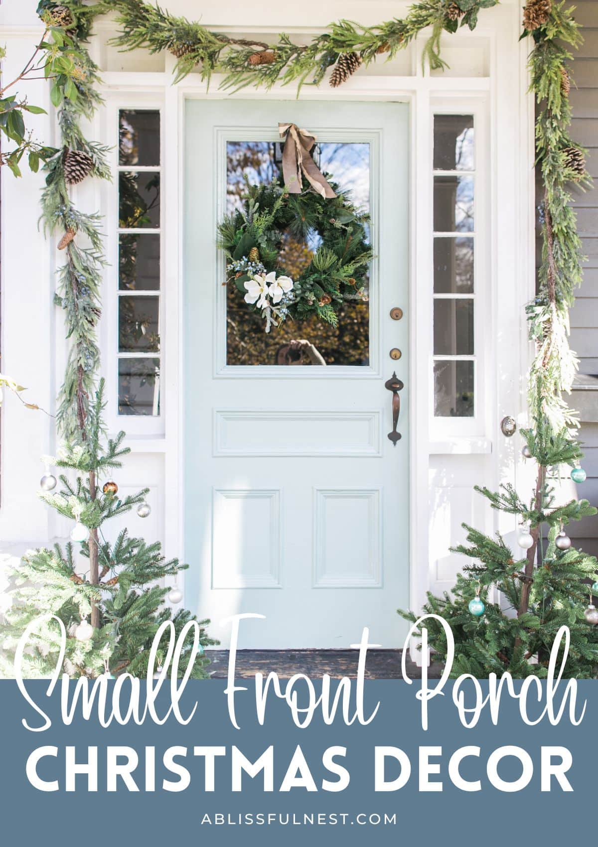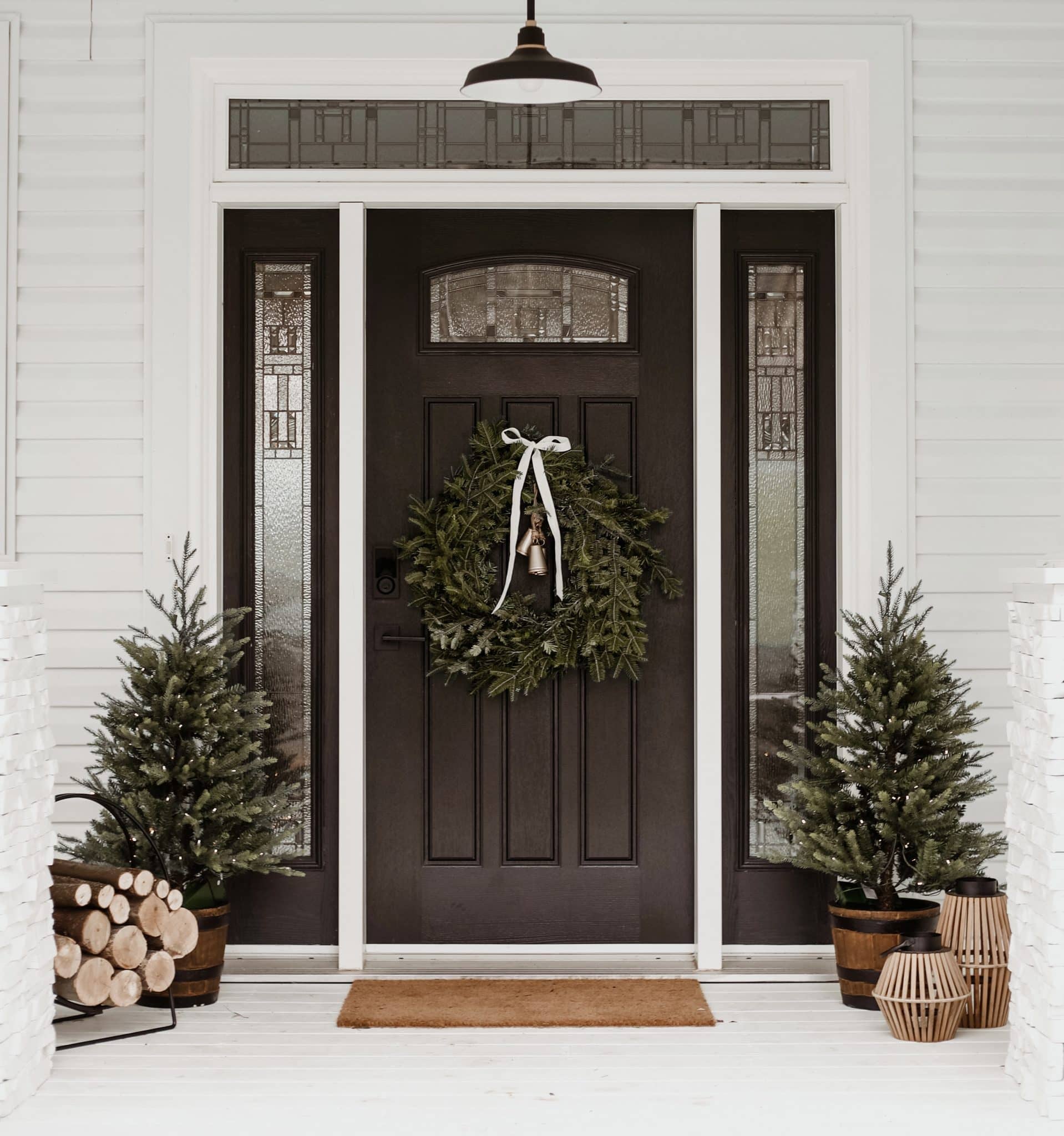 When decorating a small porch, the front door should be your main focus since it instantly sets the mood for your entire holiday entryway.