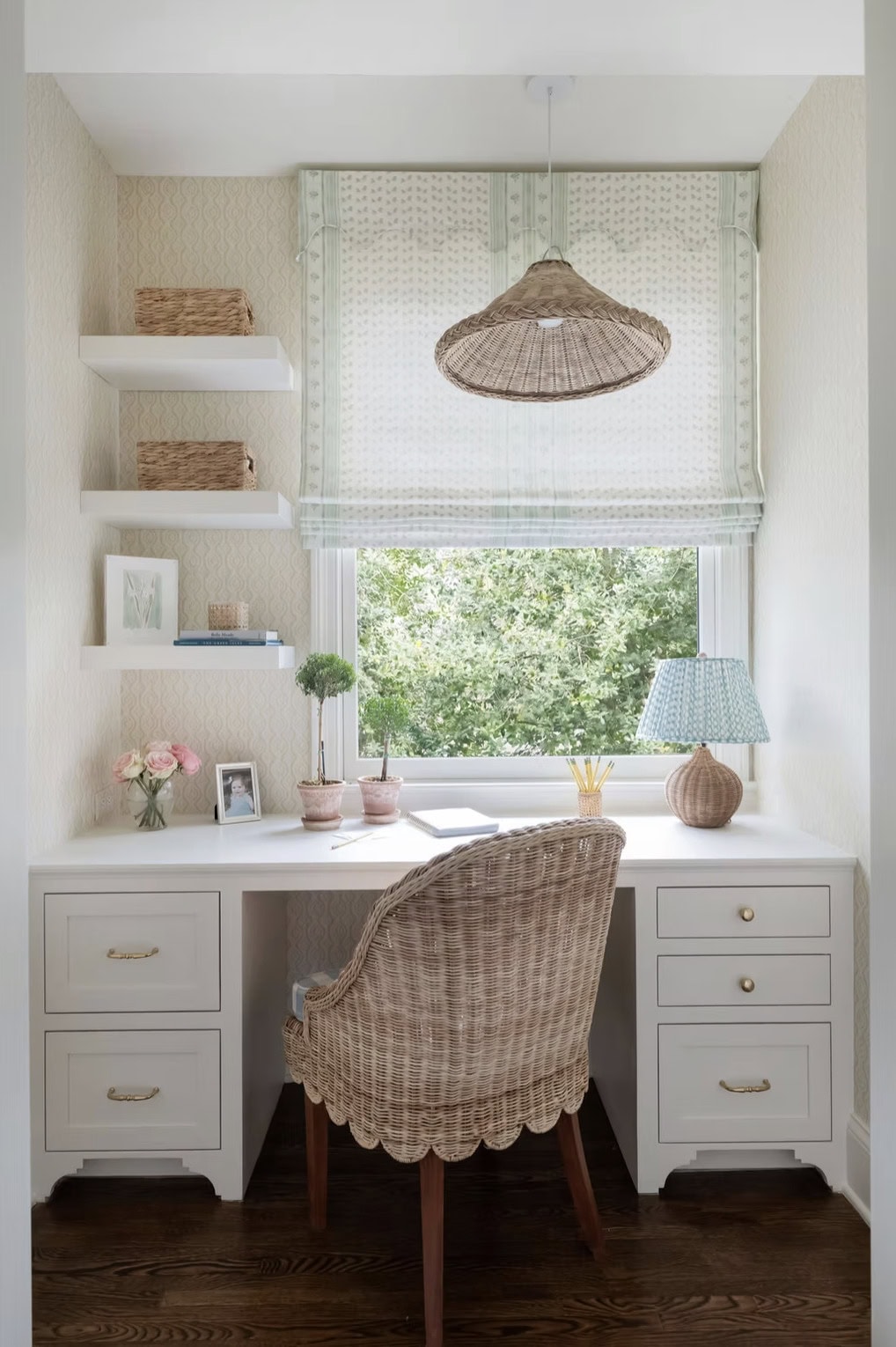The goal is to create a space that feels light and roomy, even if you’re working with just a corner or a compact room.