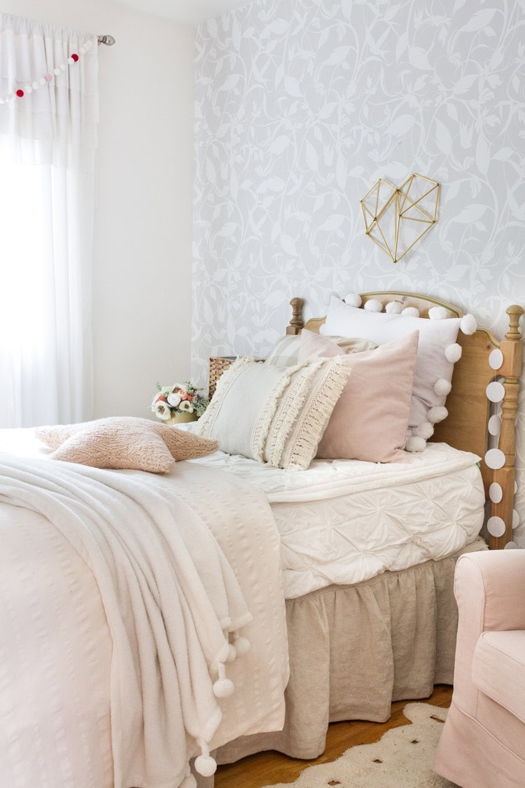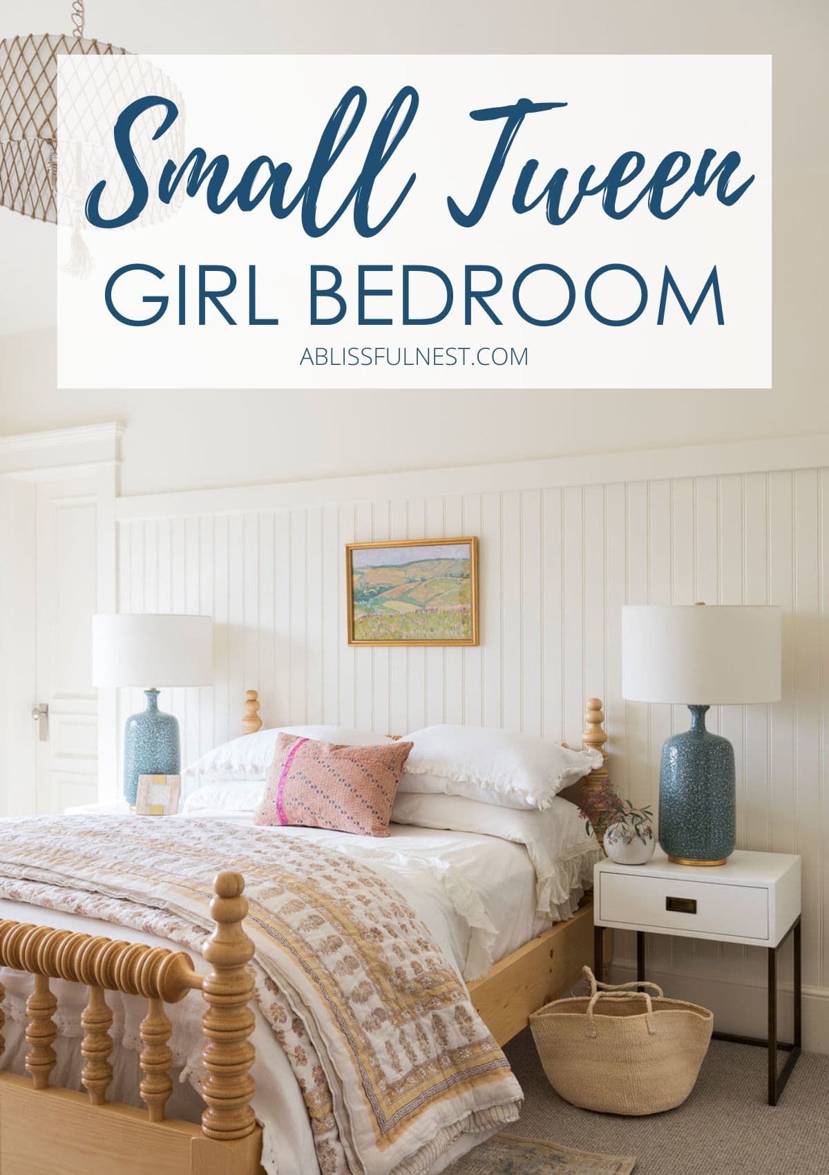 When picking decor for a small tween bedroom, we always look for things that add style without taking up too much space.