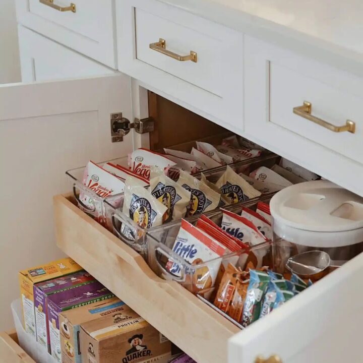 It’s a smart solution for storing individually packed snacks and pantry items without cluttering up your countertops.