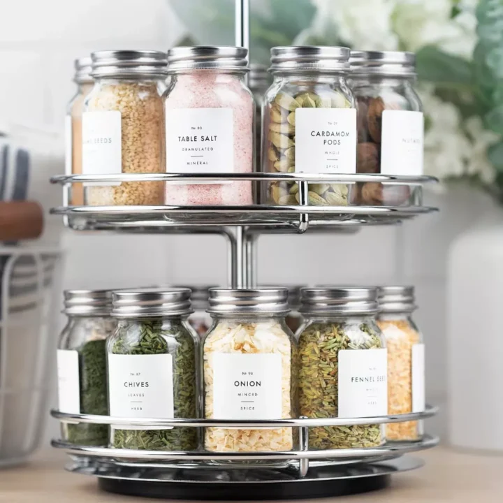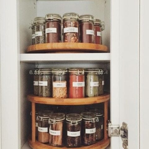 Nobody wants to dig through crowded bottles just to find one spice, so implementing kitchen organization ideas is an absolute must!