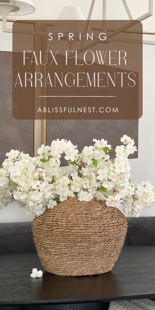 From glass vases to woven baskets, these faux floral displays add an effortless touch of spring to coffee tables, entryways, or dining areas.