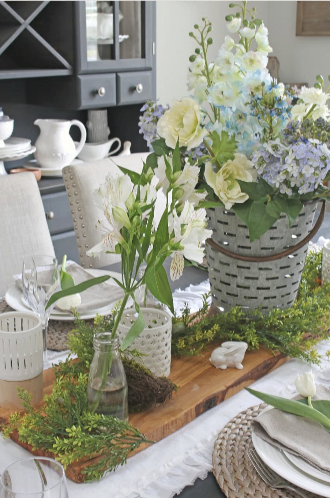 Arranging faux versions of these classic spring flowers on a dining table tray means you get that beautiful seasonal centerpiece without chasing what's in bloom at the market.