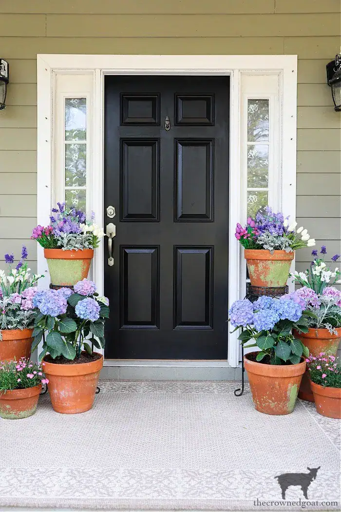 A fresh coat of paint on your front door or old planters instantly updates everything for less than twenty dollars total.