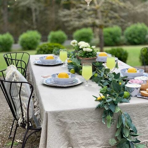 Lush Greenery Garland, Vintage Blue and White Plates + Fresh Lemon Accents