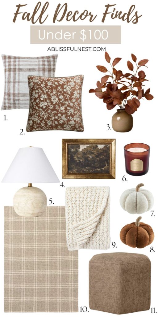 Sharing a collection of stylish and affordable fall decor finds under $100 that are budget-friendly to transition your home for the season. Also includes ideas to refresh a space, where to shop for fall decor, and examples of how to use these pieces in your home.