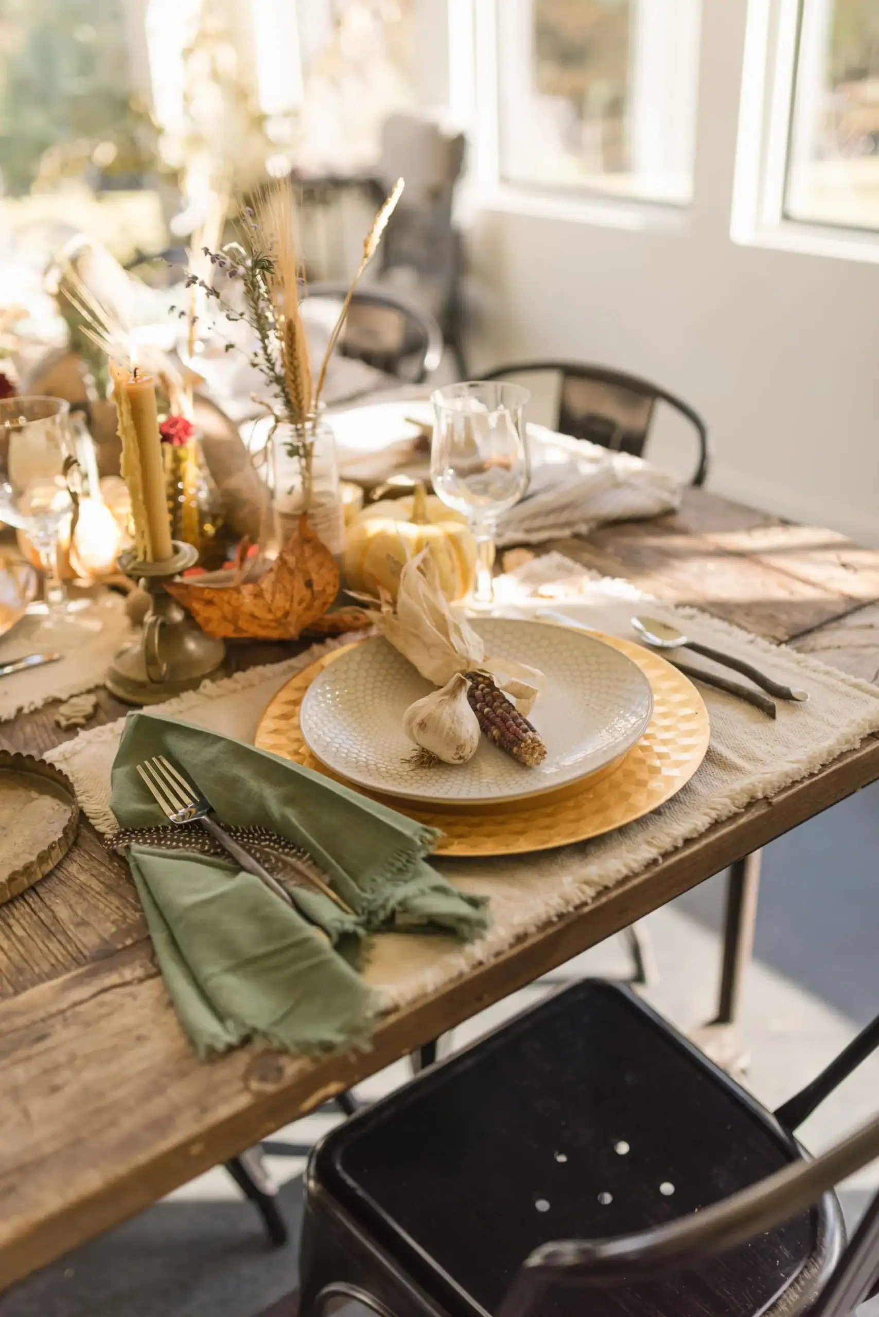 Add a small decorative piece at each place setting, like a name card or mini pumpkin, to make each guest feel seen and special.