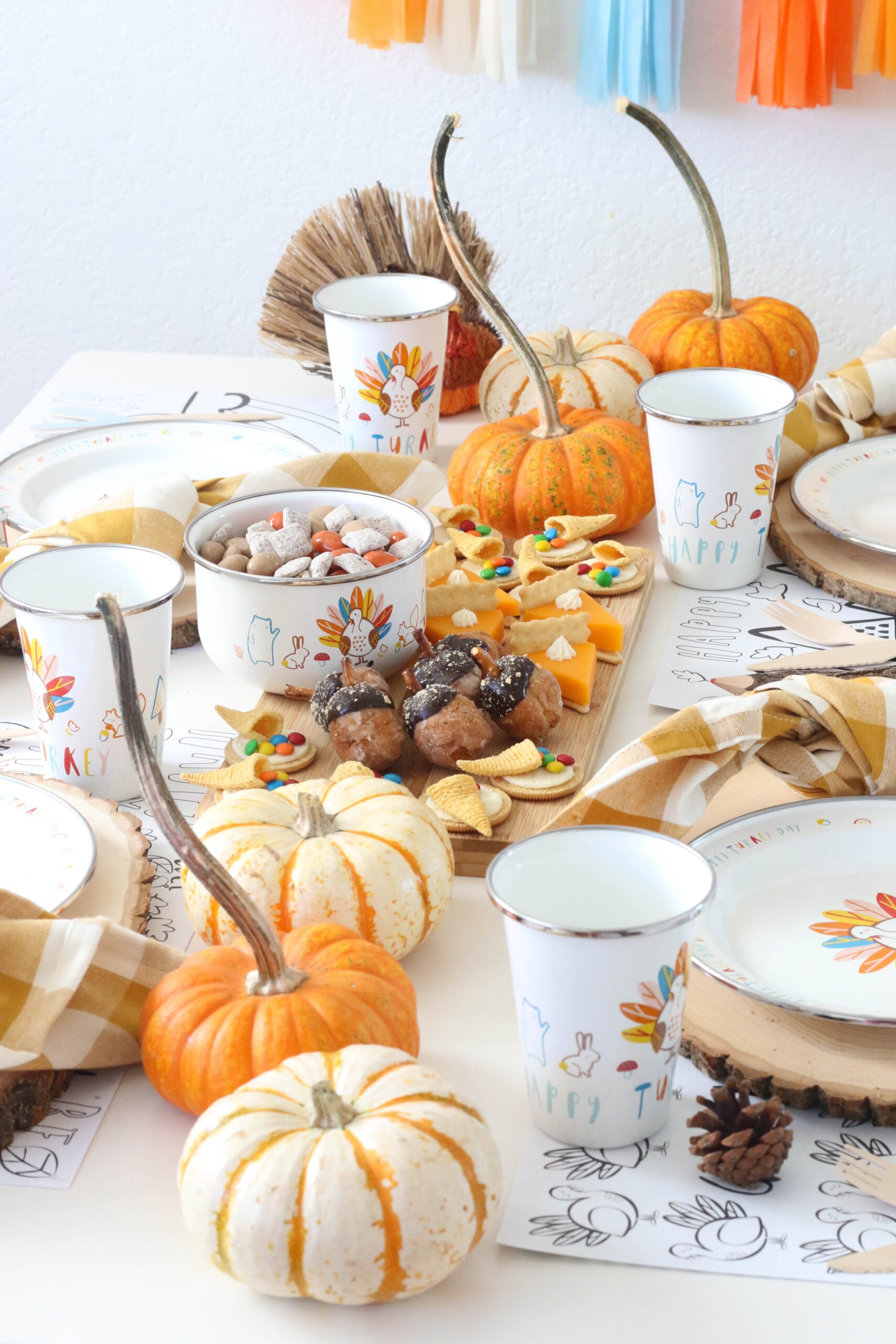 A kid-friendly tablescape shows that Thanksgiving decorating ideas can be fun and practical without taking away from the beauty of the adult table.