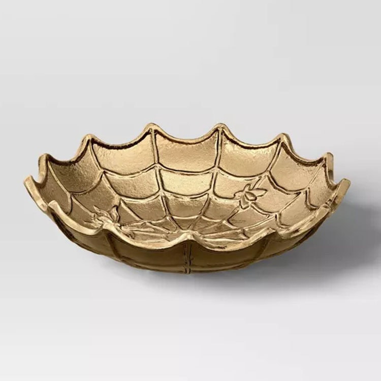 3. This gold spiderweb shaped bowl is the perfect candy dish for Halloween, but it will also look so pretty displayed on an entryway table or coffee table this season! It’s Halloween done in a chic way, LOL. Shop this $20 gold decorative bowl here.