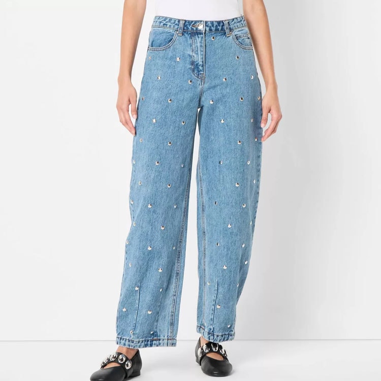 STUDDED BARREL JEANS