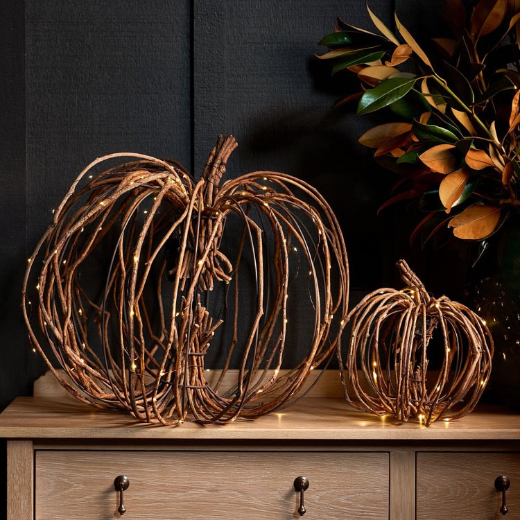 5. These lit woven pumpkins are so pretty and the perfect pieces to add to your home this fall! They’ll work for fall as a whole, Halloween and Thanksgiving all so well and are such a fun piece to mix and match the two sizes with! Shop these lit stick pumpkins here.