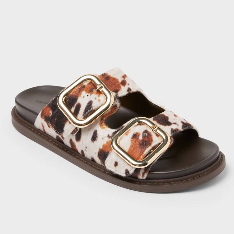 4. These cow print double strap sandals are so chic if you live somewhere warm this fall! Cow print has become so trendy and these scream fall while still being a pair of sandals. Plus they are such a good price! Shop these fall sandals here.