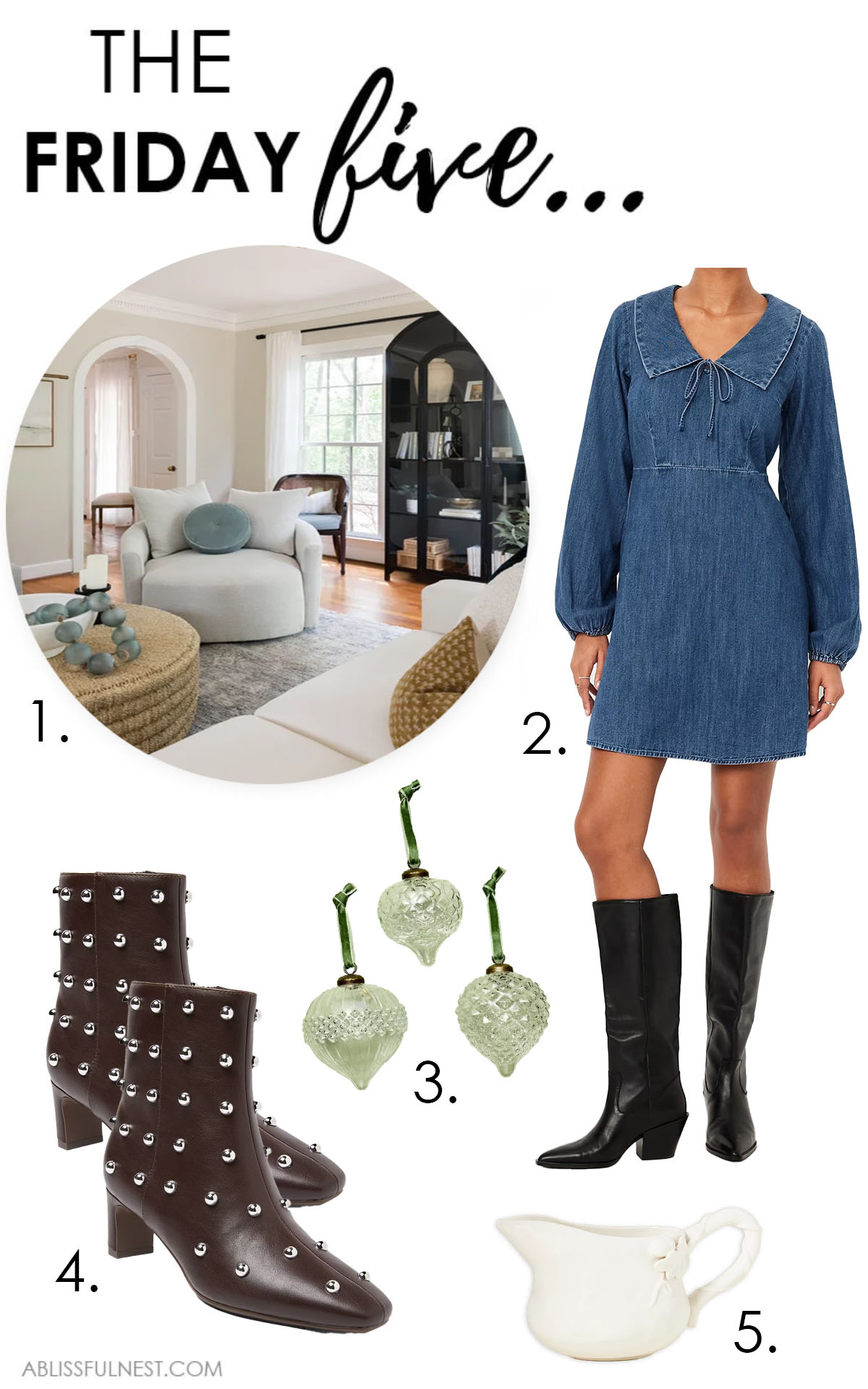This week I am sharing a stunning living room design, the prettiest denim dress for fall, the cutest booties you need to add to your closet and two home decor finds you will love!