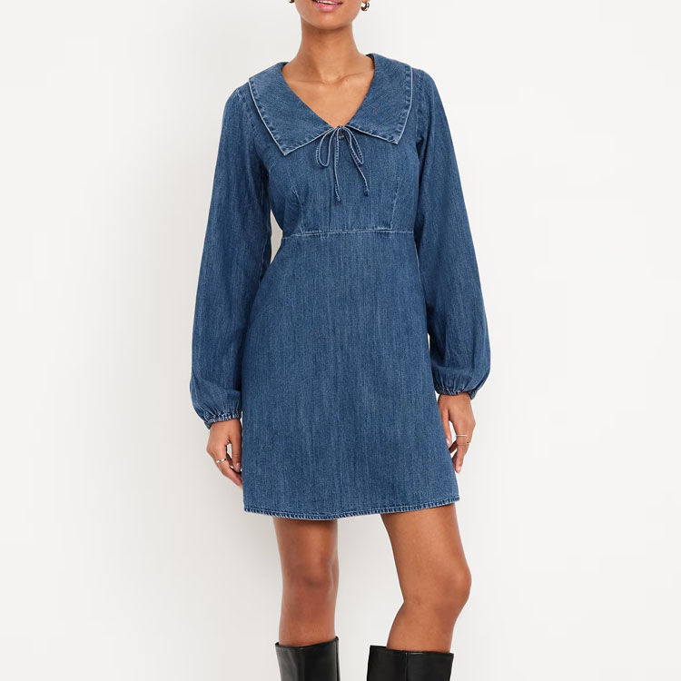 FIT & FLARE DENIM COLLARED MINI DRESS