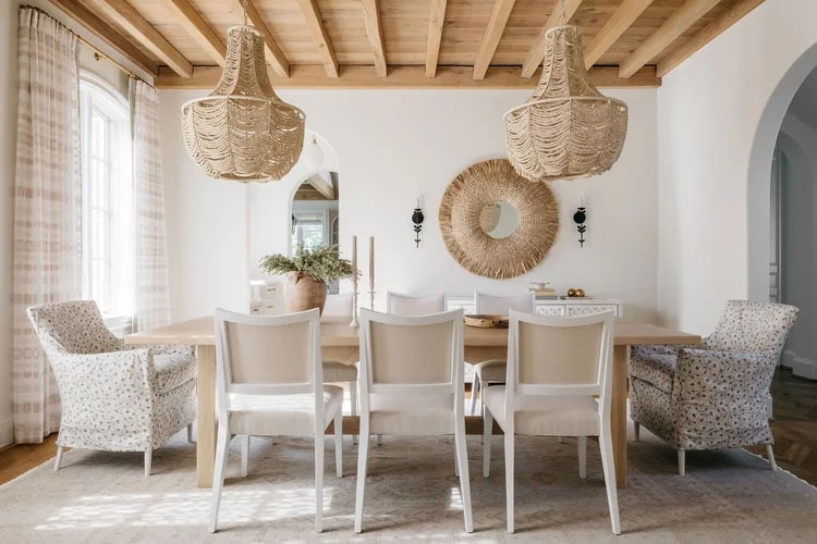 1. How stunning is this dining room designed by Kate Marker Interiors?! It’s SO perfect – it has coastal touches and a modern, chic feel and it’s all just so, so good together. Check out those chandeliers – ugh! So good; see the entire home here.