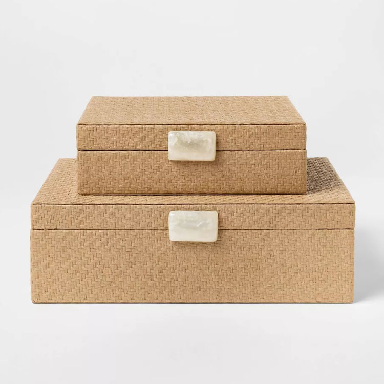 3. These woven decorative boxes are something similar to decor I see often in stores like Home Goods, and while they’re just as pretty, the prices of these are slightly better AND not every location always has what you’re looking for at the right time LOL. The capiz-looking clasps pair perfectly with the woven touch and I love that they come in two sizes that you can mix and match with! Shop them here.