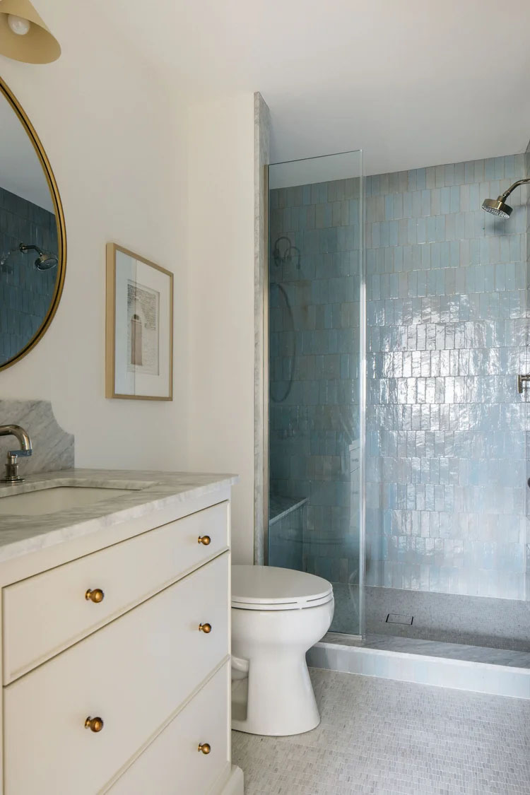 1. This stunning bathroom designed by Kate Marker Interiors is so dreamy! I LOVE that shower tile – you can’t beat a statement in a bathroom like this one! Check out the entire home here.
