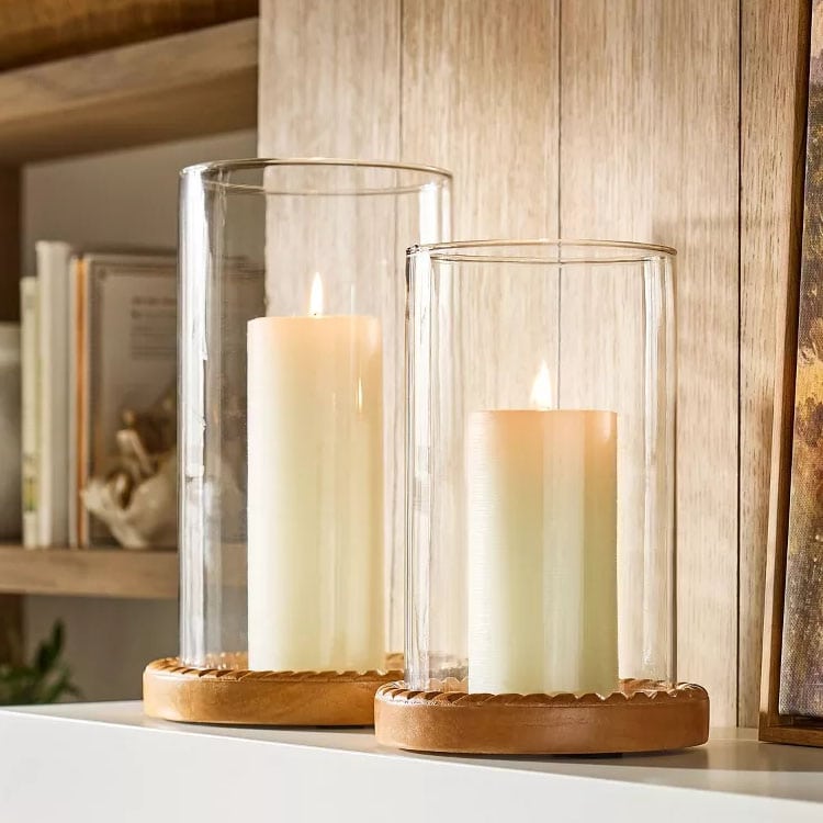 4. These wood glass hurricanes come in two sizes and I have been looking for something new and fresh to replace my mantle Christmas decor, and these are the perfect solution! You can mix and match them but they look so chic together and will add texture and a stunning new look to your space this season – shop them here.