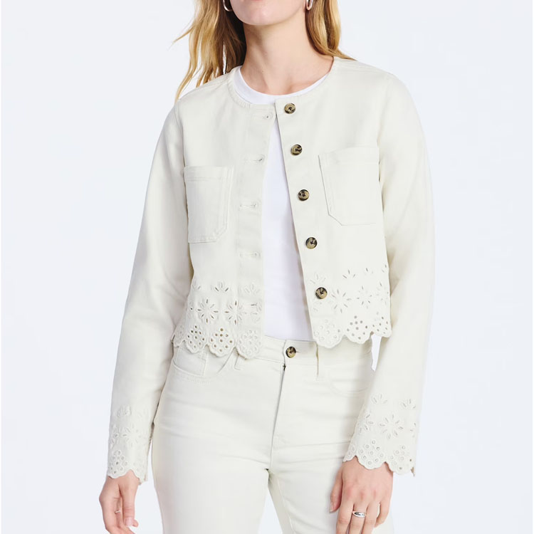 WHITE EMBROIDERED EYELET DENIM JACKET