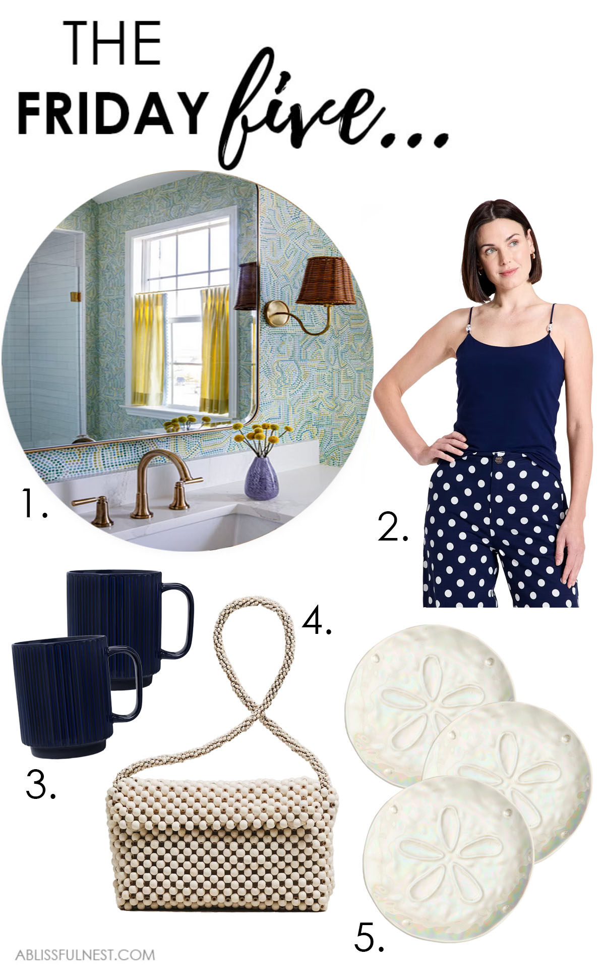 This week I am sharing a stunning wallpapered bathroom, two hosting must haves that elevate your home, the prettiest summer handbag and a fun under $20 summer tank you’ll love!