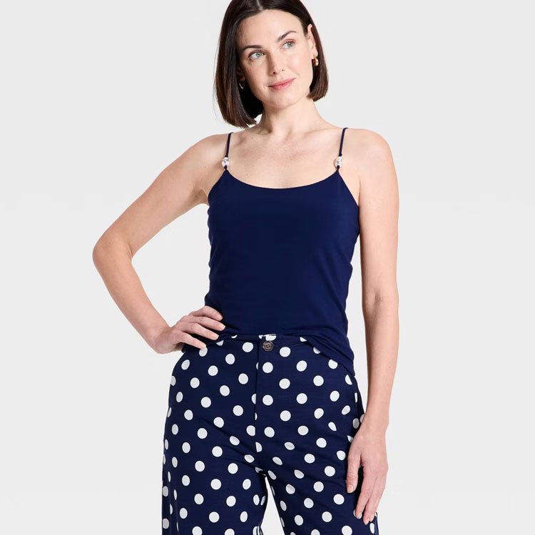 2. This pearl embellished tank top is SO cute! It also comes in brown – it’s really just a simple cami style tank but has the prettiest pearl embellishment on the strap and I love how much it elevates a basic top! Only $15, too! Shop it here.