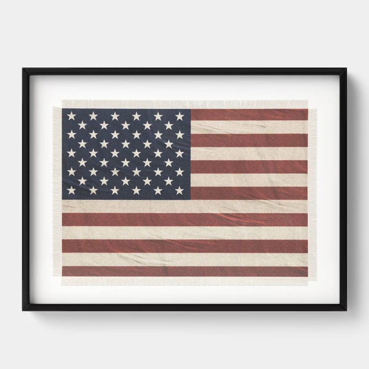 FRAMED BURLAP AMERICAN FLAG ARTWORK