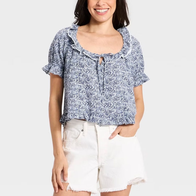 2. This floral ruffle short sleeve blouse is a spring/summer must have in your closet this season! Wear it with jeans, shorts, a skirt – dressed up or down it’s the perfect $25 navy floral top! Shop it here.