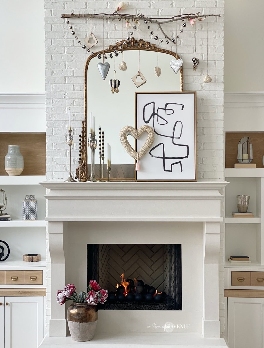 Your mantel is the perfect spot to create a romantic focal point with Valentine’s Day decor, as everyone’s eyes naturally draw to it when entering the living room.