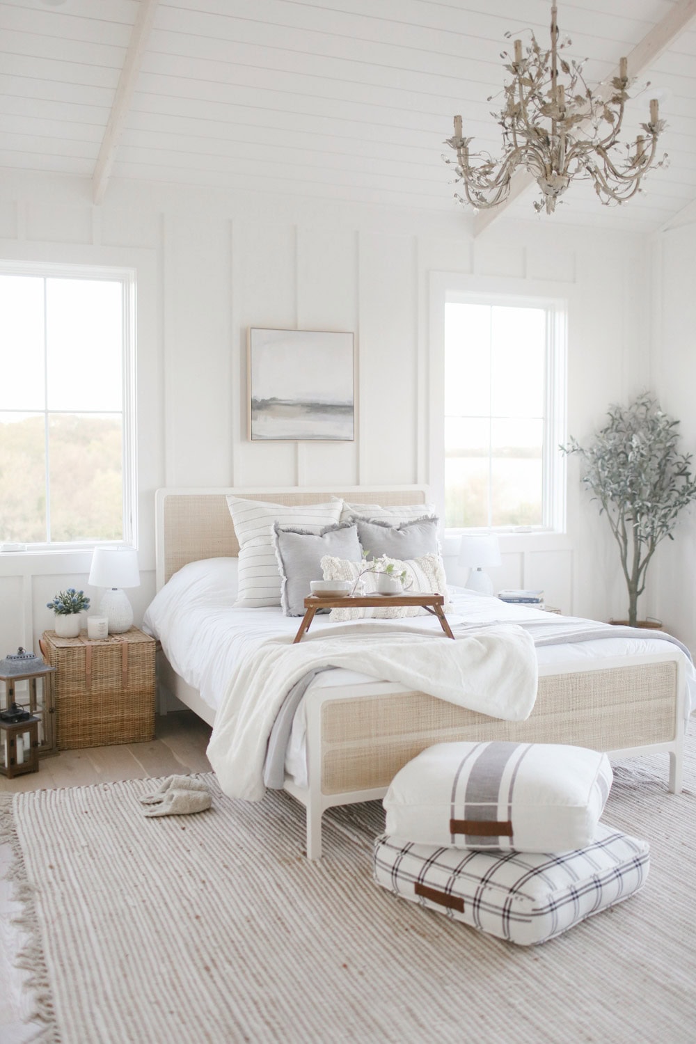 Mix in natural materials like rattan, wood, and cotton to keep the space from feeling too plain or too perfect.