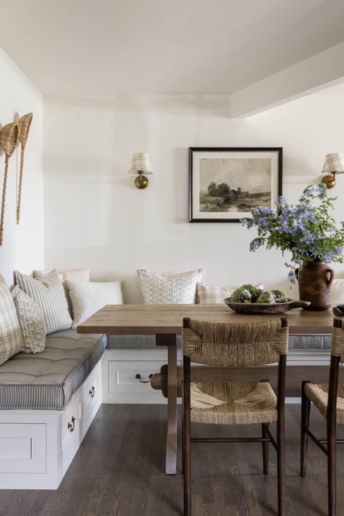 Focus on good fabrics and materials like linen curtains or a solid wood table, since they bring warmth and stay beautiful year after year.