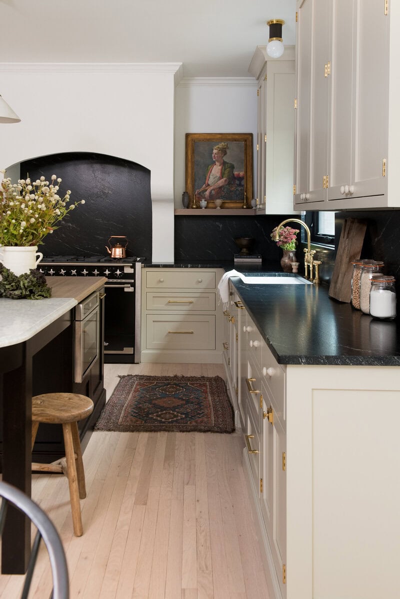 Using nice yet tough materials like linen, marble, warm wood, and blackened iron gives the space depth and style without tipping the vibe toward fancy and formal.