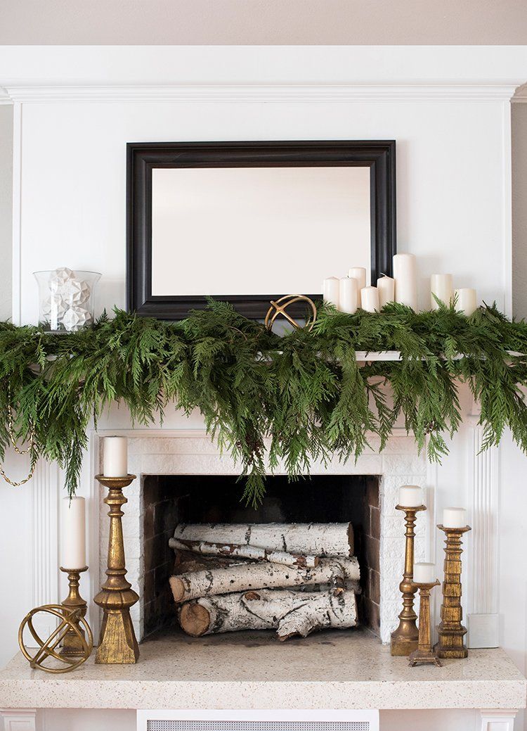 Think about using winter greenery, faux greens, and simple textures to build a fresh and gentle atmosphere on your fireplace mantel decor this season.