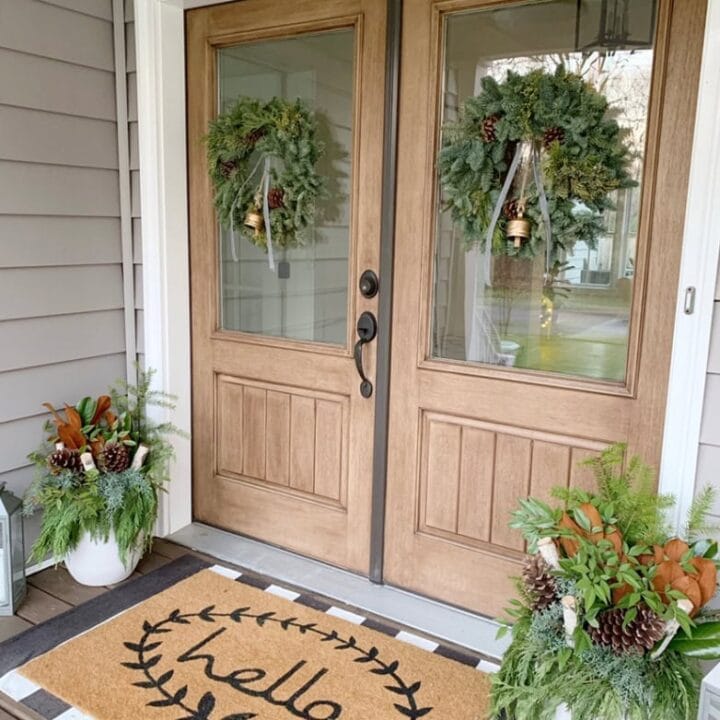 You’ve got that woodsy feel without the mess of real pine needles—perfect for making your entrance feel festive and fresh, no matter how cold it gets!