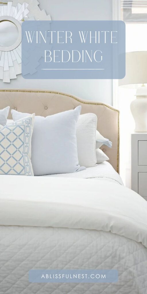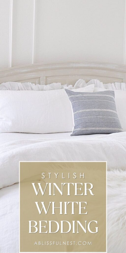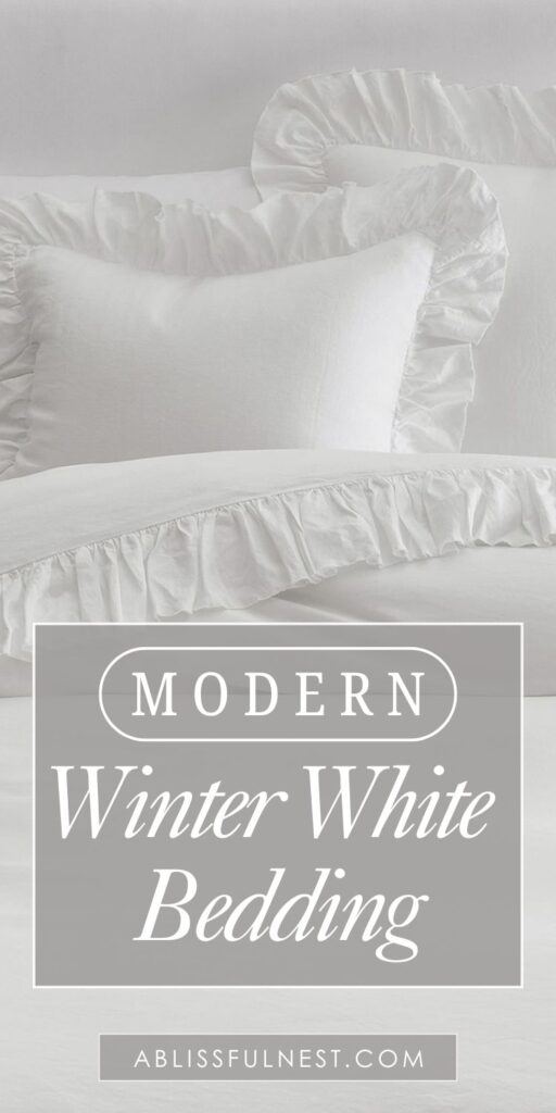 Winter white bedding is the perfect way to make your bedroom feel warm, soft, and cozy when it’s cold outside.