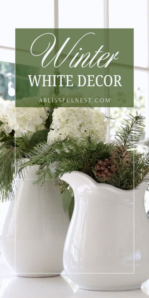 These white pitchers filled with winter greens bring a natural, snowy look right into your kitchen.