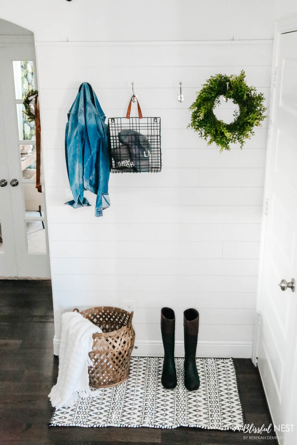 Woven baskets bring in both texture and warmth, especially when filled with blankets, pinecones, or dried winter greens.